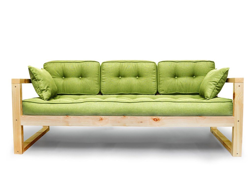 Диван изготовлен из массива сосны, выдерживает максимальную нагрузку до 140кг, рассчитан на трёх человек.