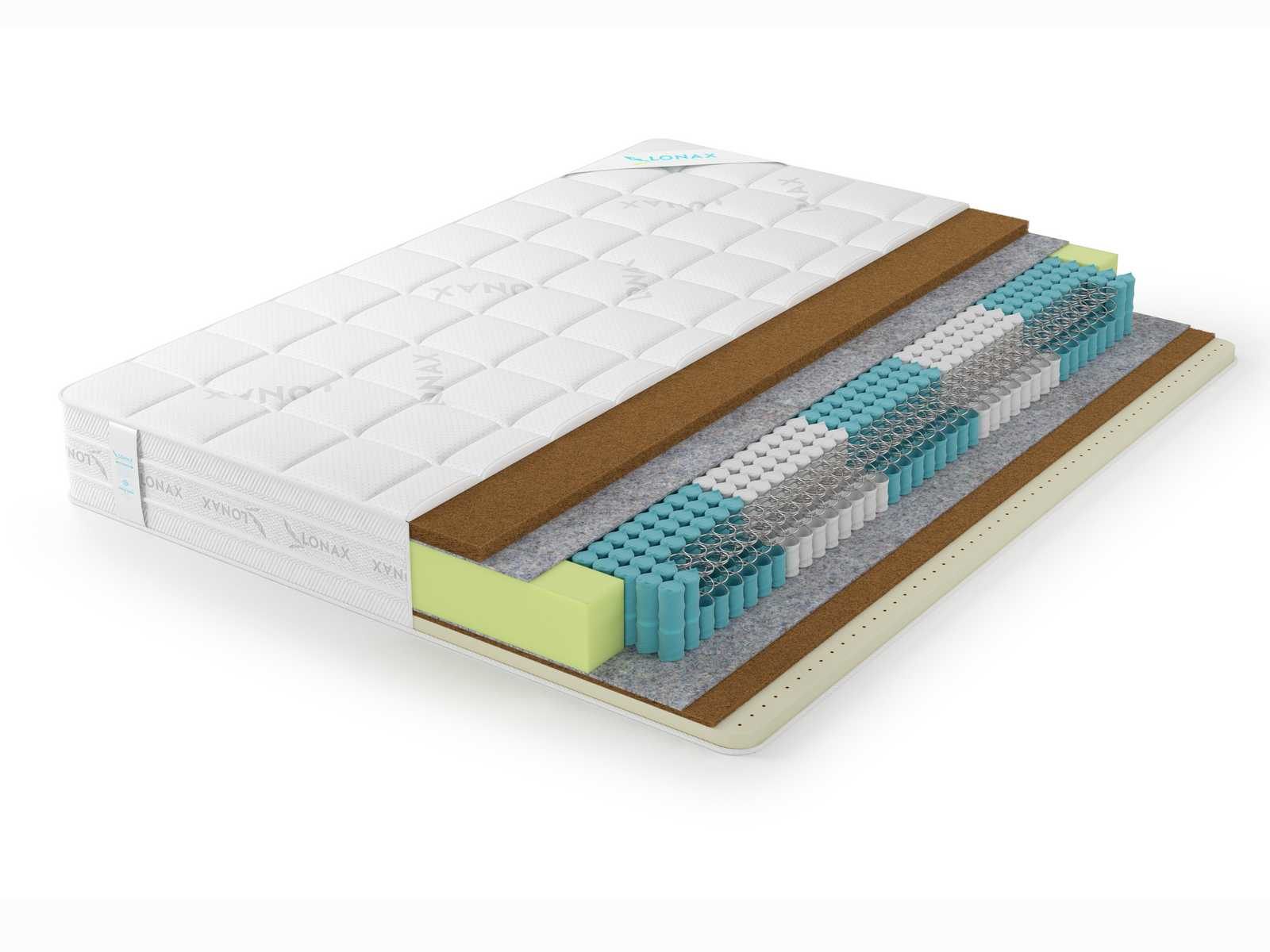 Матрас разной жесткости сторон на основе натуральных наполнителей и современного блока с уменьшенным размером пружин S1000 5 зон (~500 пр./м2). Данный пружинный блок точечно распределяет нагрузку и поддерживает позвоночник в физиологически правильном положении.
