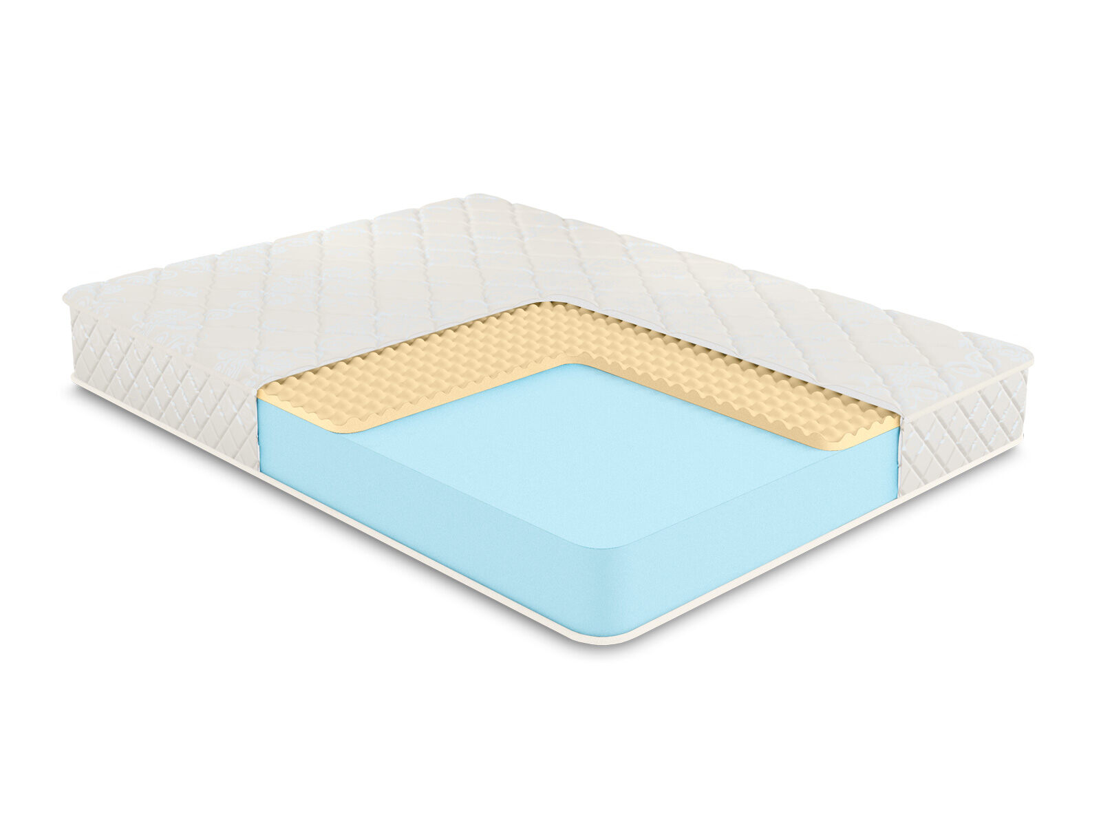 Чехол матраса из хлопкового жаккарда, который обладает высокой износостойкостью, простеган на Холлконе и имеет очень длительный срок службы. Ткань чехла может немного отличаться по рисунку, а также по оттенку цвета, это не влияет на ее свойства и качество.