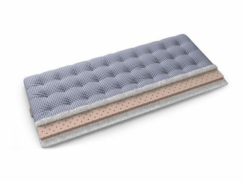 Самый популярный настил. Рулонный латекс отличный и долговечный, хорошо распределяет нагрузку, имеет ортопедический эффект. За счёт упругости латекса давление на сосуды и мышцы во время сна оказывается минимальным. Латекс – уникальный материал с точки зрения индустрии сна. Он прекрасно используется в качестве самостоятельной основы.