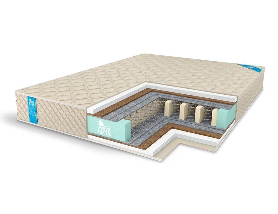 С каждой из сторон матраса уложены слои холлкона и кокосовой койры. Оба материала обладают высокой плотностью и выраженной жёсткостью, но имеют разную природу. Если холлкон – это искусственный материал с вертикально расположенными волокнами, то койра – натуральный наполнитель, который получают из кокосового волокна. Особая структура холлкона позволяет ему пружинить и амортизировать, а кокос даёт для спины качественную опору и ортопедическую поддержку.