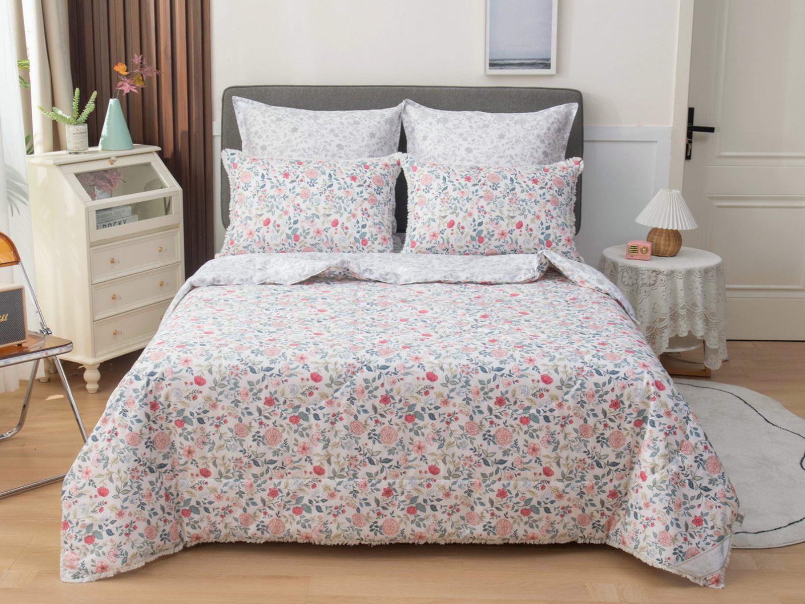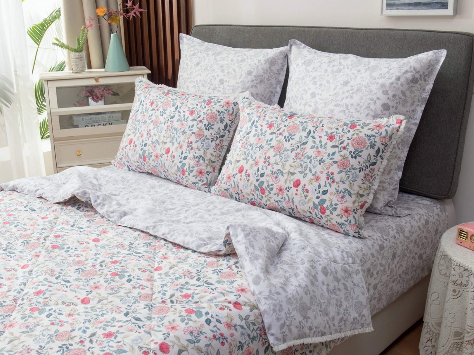 В комплекты комфортеров с одеялом Бернадетт входят наволочки, простыня и легкое всесезонное одеяло. Оцените это современное и очень удобное решение, которое идеально подходит тем, кто не любит возиться с пододеяльниками.