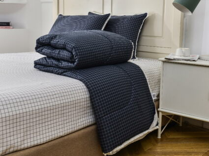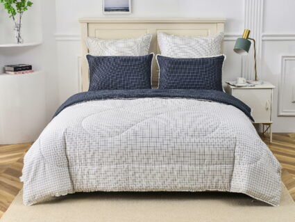 В комплекты комфортеров с одеялом Бернадетт входят наволочки, простыня и легкое всесезонное одеяло. Оцените это современное и очень удобное решение, которое идеально подходит тем, кто не любит возиться с пододеяльниками.