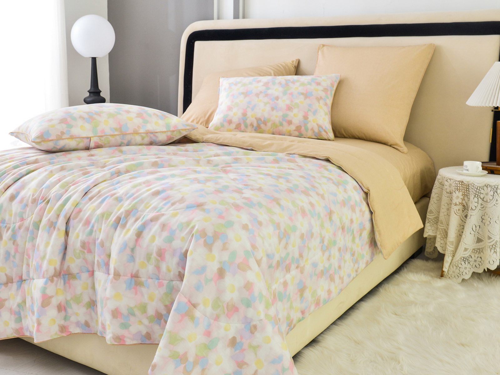 Особенность: двусторонняя модель, наволочки и одеяла декорированы кантом.
