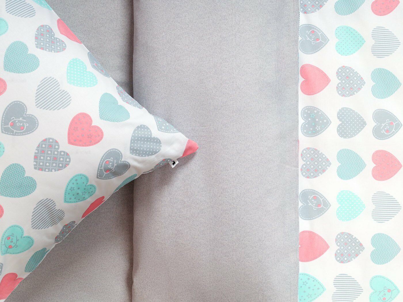 Пододеяльник –двусторонний: верх из ткани А (принтованная ткань), обратка из ткани В (однотонная рогожка), с потайной молнией.