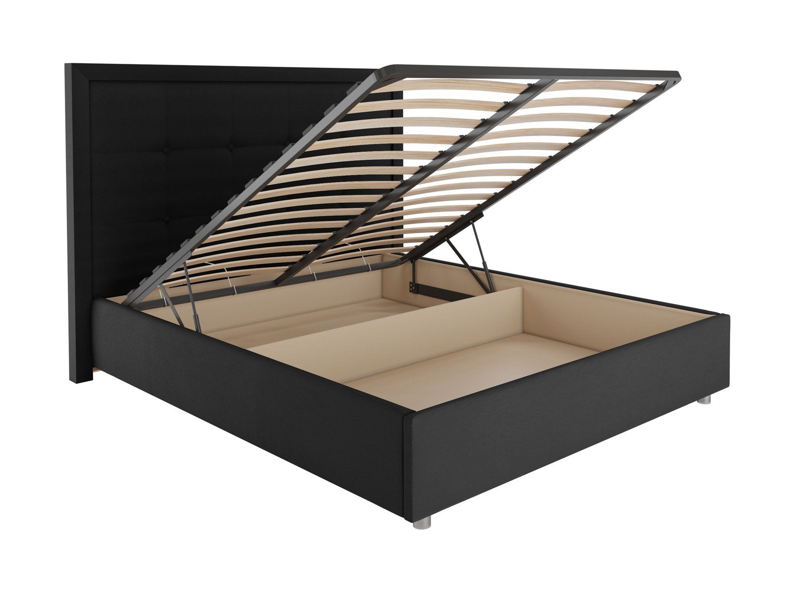 В комплектации с подъемным механизмом кровать имеет вместительный бельевой короб с двумя отделениями.