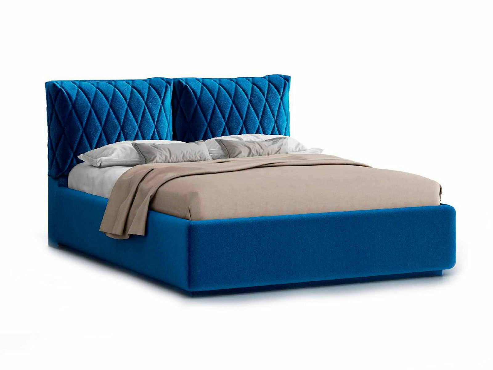 Модель Celeste от Nuvola — современная интерьерная кровать с оригинальным мягким изголовьем, декорированным двумя объемными подушками, которые с легкостью можно отстегнуть от изголовья для перемещения или приподнять на матрас для изменения угла наклона подушки — высокий уровень комфорта и поддержка спины во время чтения книг, просмотра любимых фильмов или работы за ноутбуком!