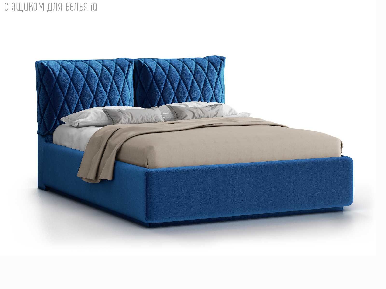Кровать укомплектована IQ с подъемным механизмом и ящиком для белья без дна (дополнительная платная опция - дно к ящику IQ из HDF (ХДФ). Каркас кровати на цоколе, декоративный чехол на цоколе съёмный. Глубина ящика для белья - 30 см, без ограничения нагрузки на ящик.