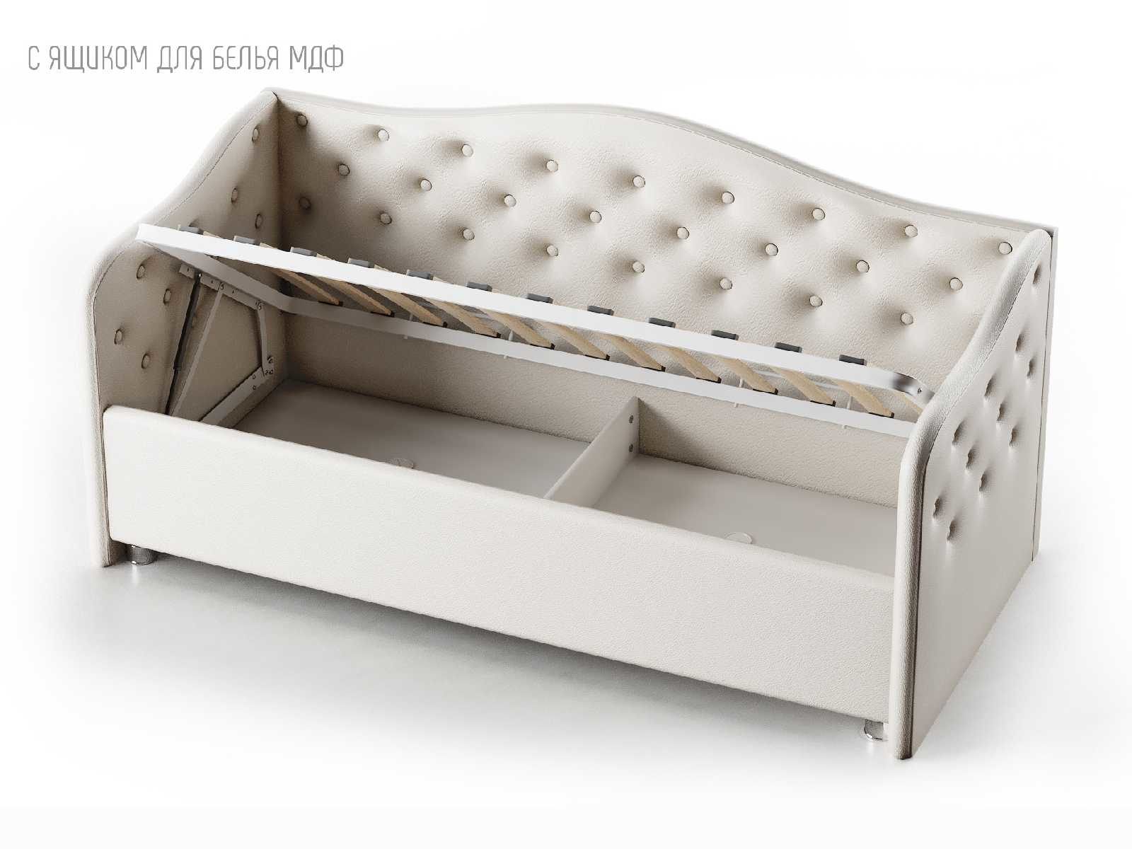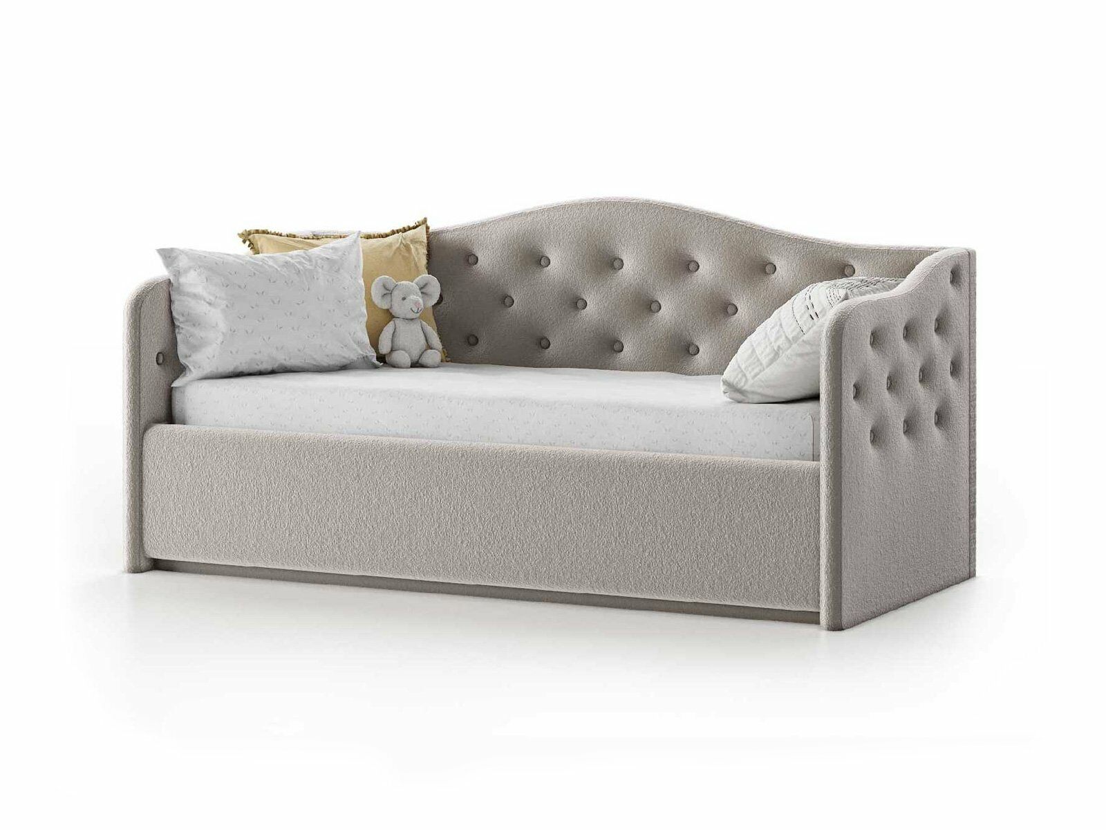 Прекрасная и воздушная кровать-софа Nuvola Elea идеально подойдет как взрослым, так и детям. Кровать выполнена в классическом стиле, изголовье-спинка и боковины кровати имеют плавные изгибы и декорированы изящными пуговицами.