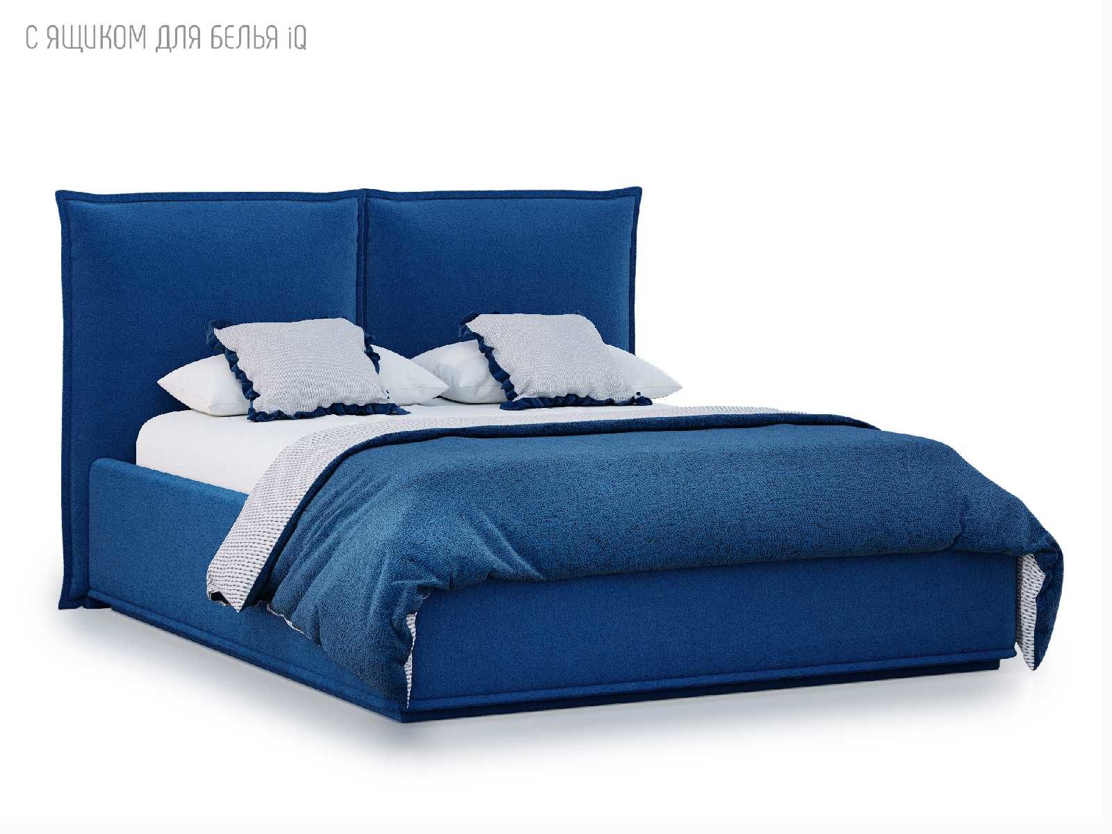 Кровать укомплектована IQ с подъемным механизмом и ящиком для белья без дна (дополнительная платная опция - дно к ящику IQ из HDF (ХДФ). Каркас кровати на цоколе, декоративный чехол на цоколе съёмный. Глубина ящика для белья - 30 см, без ограничения нагрузки на ящик.
