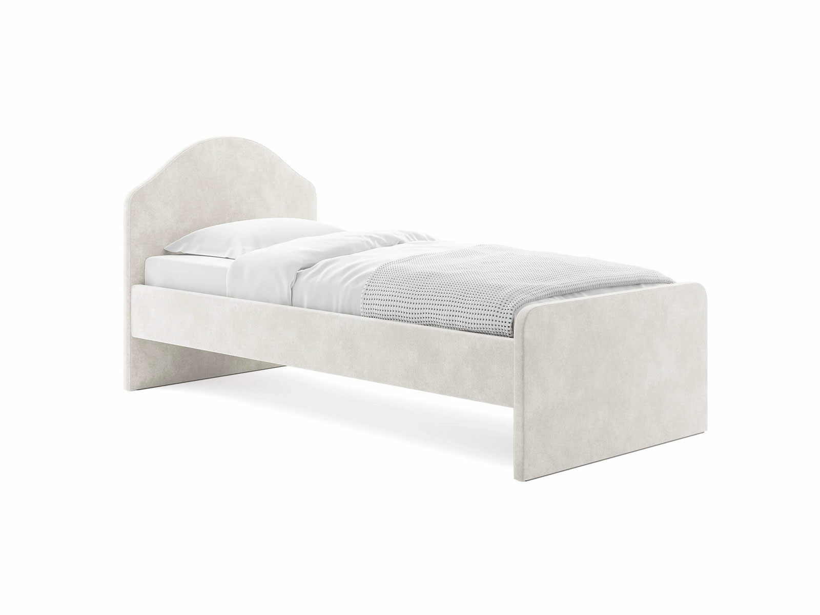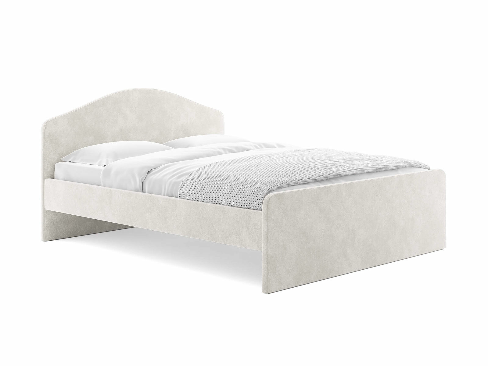 Мягкое изголовье с изгибом, плавные линии изножья, узкие царги делают кровать запоминающейся и уютной. Увеличенное расстояние до царг способствует легкой уборке под кроватью роботом – пылесосом, а также позволяет дополнительно приобрести выкатную тумбу или ящики для хранения вещей.