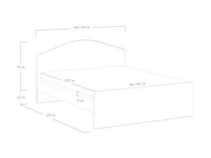 Функцию опор выполняют изголовье и изножье кровати. В кроватях с размером спального места шириной 140 и 160 см предусмотрена дополнительная металлическая опора в центре основания.