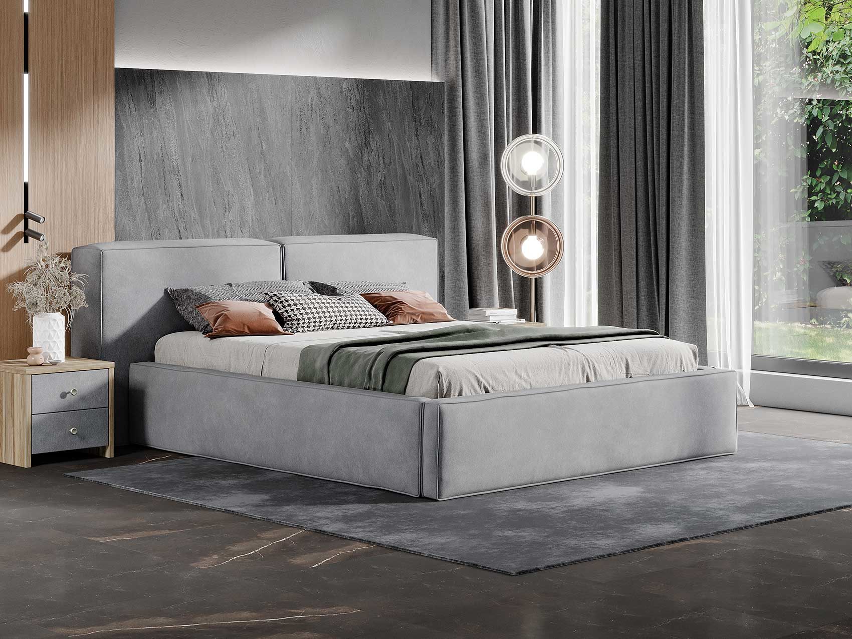 Дизайн кровати Europa подойдет для интерьеров в современном стиле, стиле лофт и минимализм. Спинка выполнена в виде двух объемных подушек. Широкие царги опущены до пола, а декоративный кант подчеркивает строгость и брутальность. Увеличенная прочность достигается за счет внутреннего металлического каркаса по периметру кровати.
