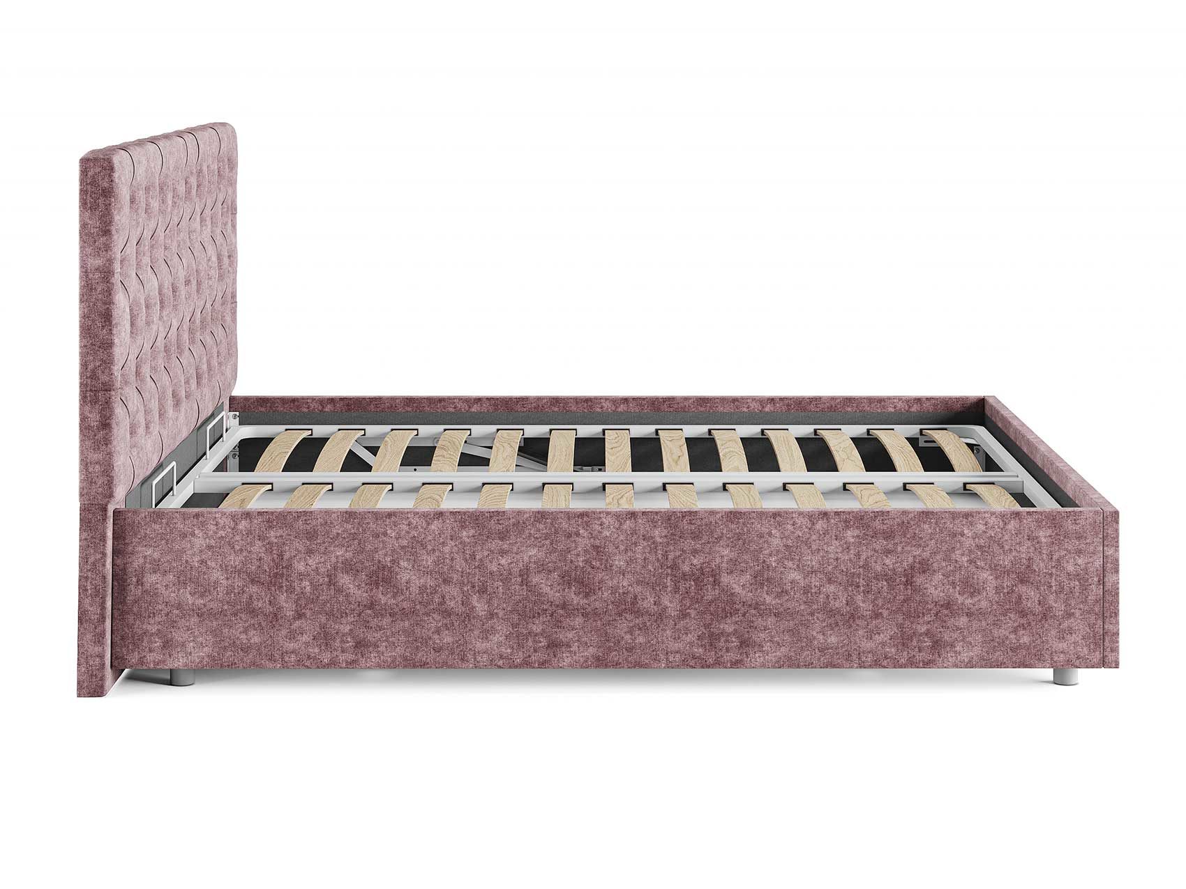 Кровать комплектуется металлическим основанием и подъемным механизмом со вместительным бельевым ящиком. Дно бельевого ящика легко сдвигается для обеспечения уборки под кроватью.