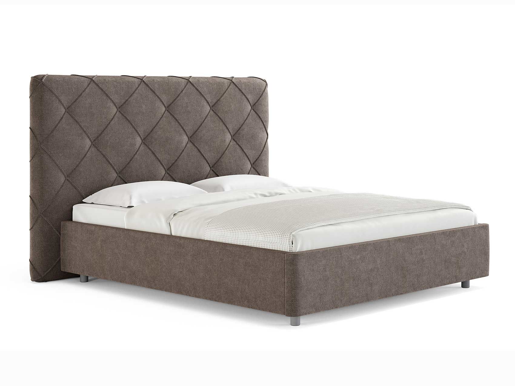 Современная интерьерная кровать. При необходимости, возможно установить подъемный механизм с бельевым ящиком. Ножная царга кровати скругленная по углам, что обеспечивает более элегантный внешний вид.