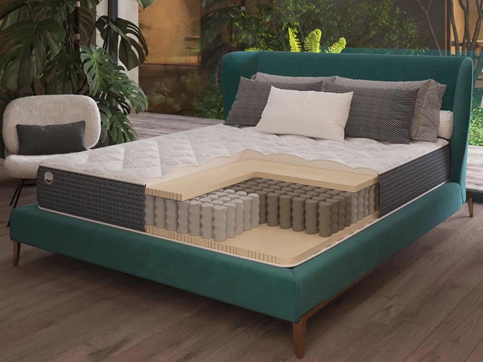 Elips - семизональный упругий элитный анатомический матрас, импортируемый из Италии. В основе - материалы последнего поколения без свинца и формальдегидов: базовый слой - независимые пружины минипакет (1428 пружин на 1 спальное место) высотой 14 см, натуральный латекс с одной стороны и анатомический слой с микромассажным эффетом (около 4 см) с другой стороны. Благодаря микро-шипикам - одна сторона матраса лучше вентилируется и ослабляет давление, оказываемое матрасом на тело. Матрас рекомендован людям с заболеваниями кровообращения, варикозным расширением вен и др. Матрас содержит ортопедическую пену, которая разработана специально для матрасов Alfabed. Материал принимает форму тела лежащего человека, что облегчает засыпание и смягчает движения во время сна.