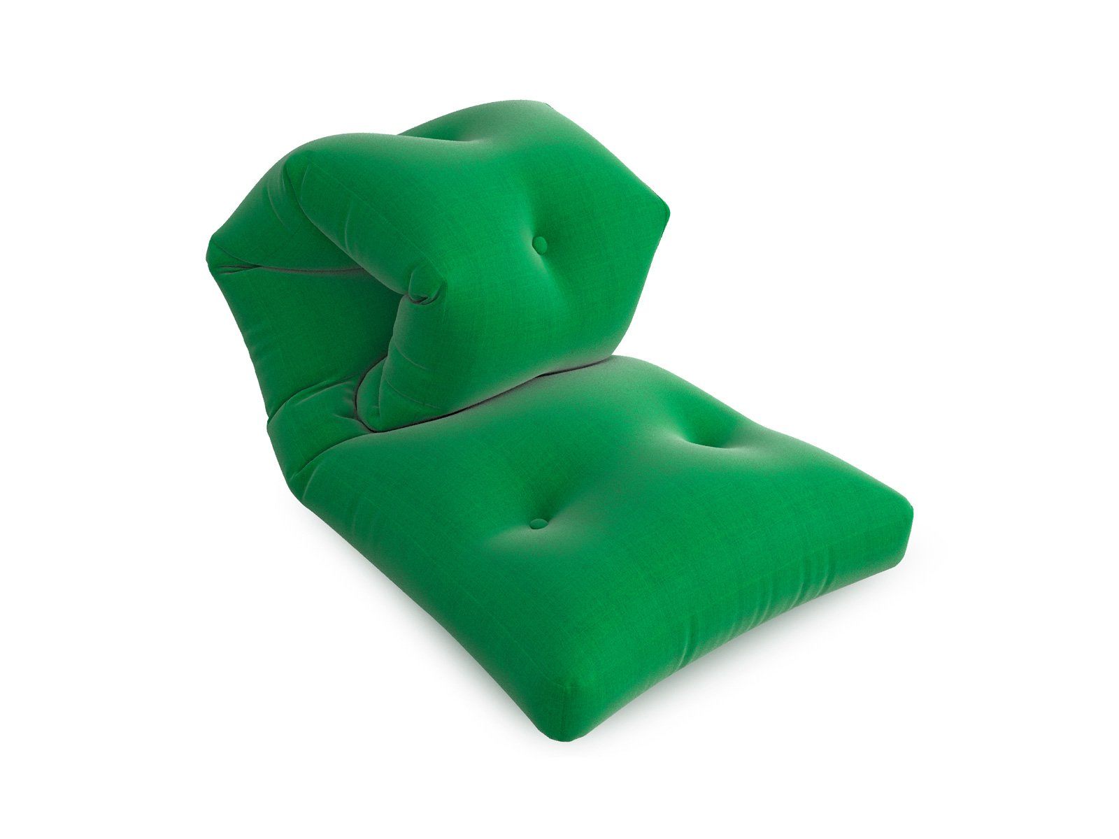 Несъемный чехол футона выполнен из плотной зеленой ткани. Она обладает высокой плотностью, износостойкостью, ее легко очищать от загрязнений и пятен.