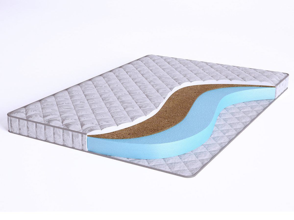 Матрас Elastic Forma CF10 относится к беспружинным моделям. Главным его преимуществом является разная жесткость сторон. Основа матраса – ортопедичная пена средней жесткости Airfoam. Благодаря своей пористой структуре она отлично пропускает воздух и препятствует скоплению пыли и влаги внутри матраса, обеспечивая благоприятный микроклимат спального места. Одна из сторон матраса выполнена из тонкого слоя кокосовой койры, придающей изделию жесткость выше средней и обеспечивающей более упругую поддержку позвоночника.