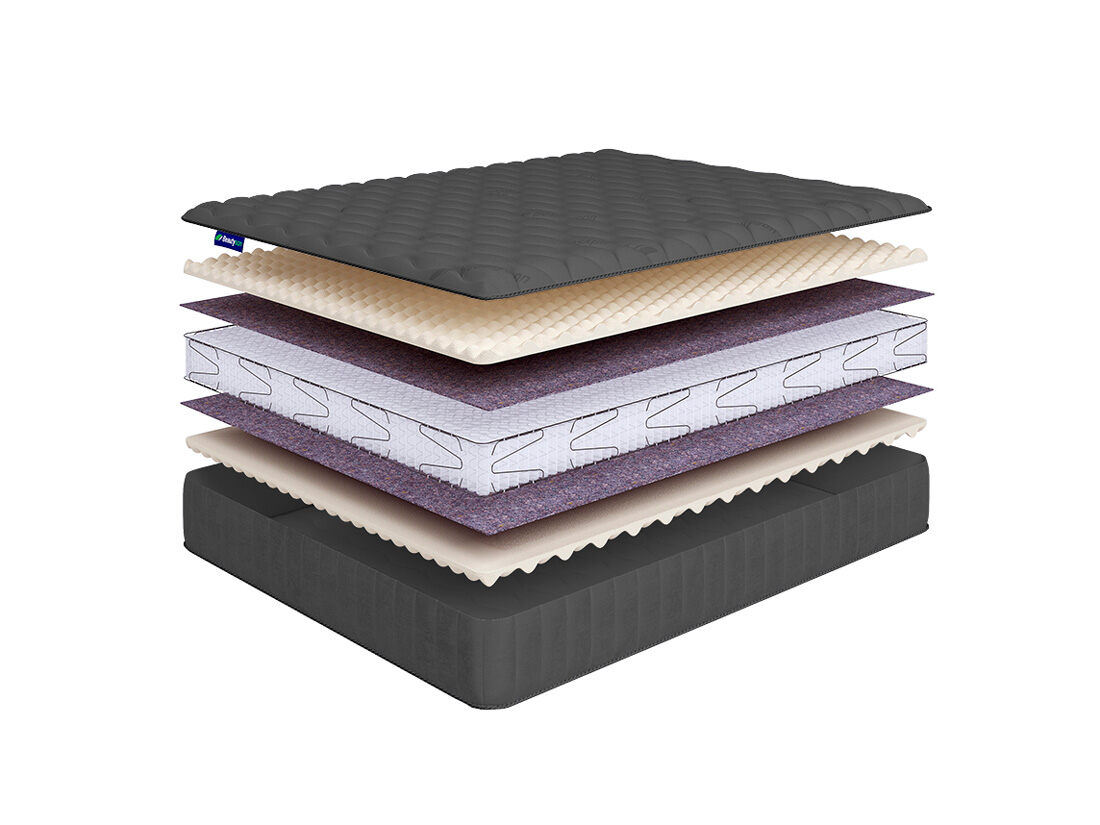 Основным наполнителем матраса является рельефный материал – airfoam massage. Он индивидуально подстраивается под тело спящего, оказывает микромассажный эффект и благоприятно сказывается на кровотоке во время отдыха.