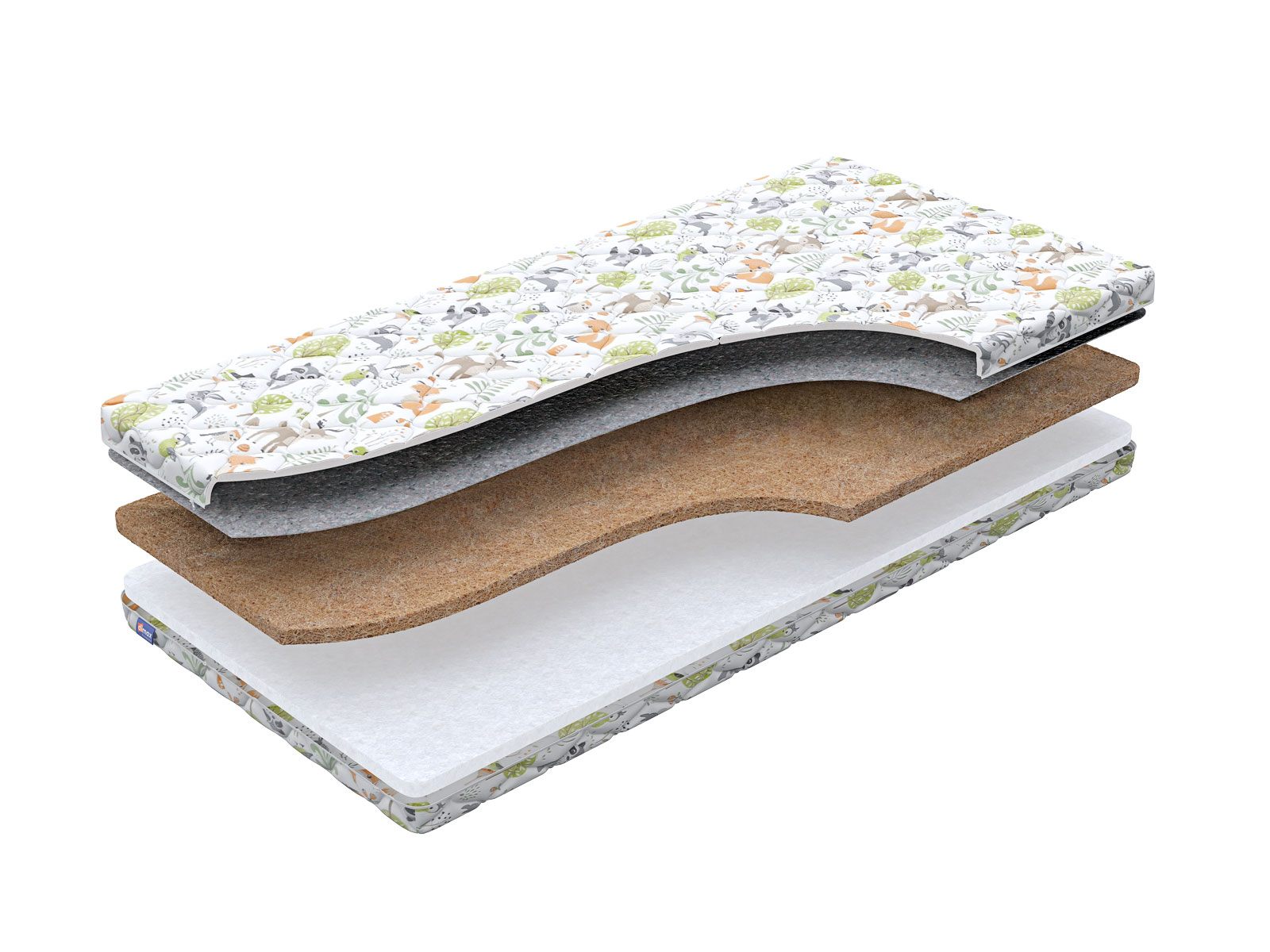 Внутри матраса скрыты качественные и проверенные временем наполнители – койра кокоса и струттофайбер. Каждый из них создан для оптимальной правильной поддержки спины вашего ребенка. Лучше других материалов в этом вопросе преуспела койра. Гибкая плита качественно удерживает позвоночник малыша в анатомически правильном положении.