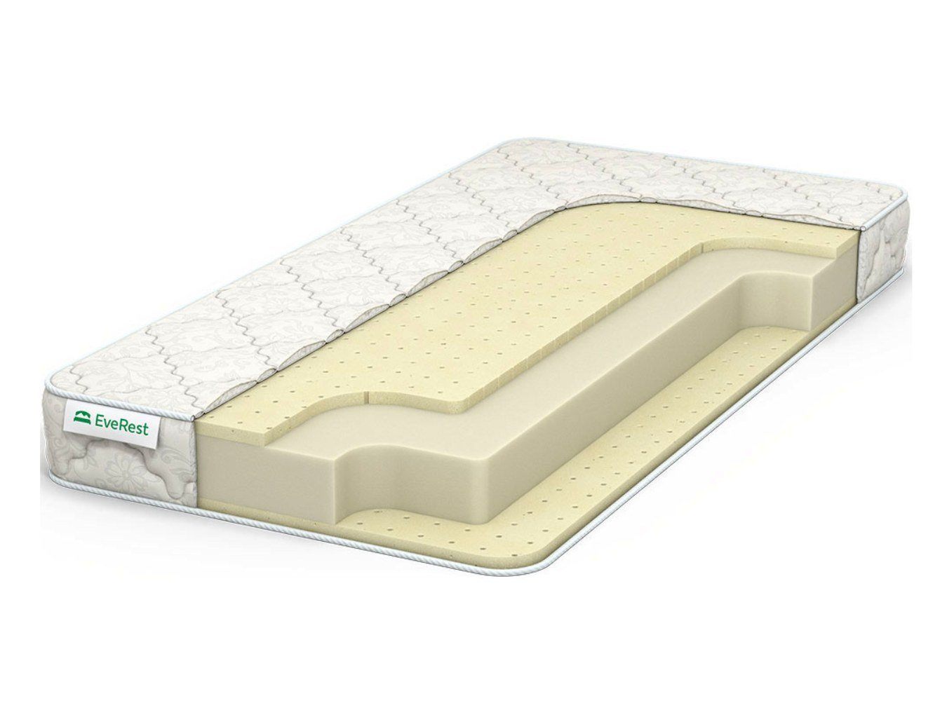 Матрас покрыт чехлом из хлопкового жаккарда со стёжкой на синтепоне.