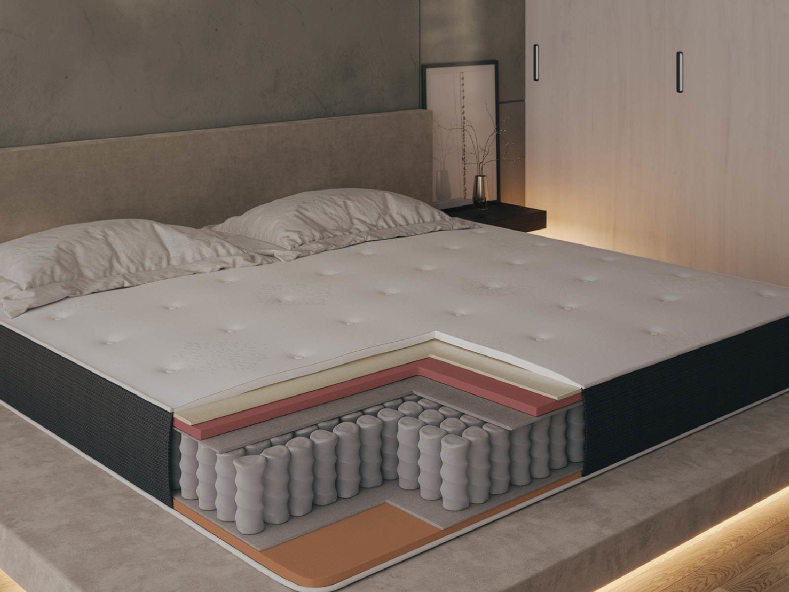 Система усиления края матраса PROEdge - запатентованная технология, усиливающая плотность периметра матраса, увеличивающая срок службы матраса за счет микро-перфорации на коробе влаго отвод и циркуляцию воздуха во время сна, что делает матрас более гигиеничным. За счет увеличения площади края матраса - на краю матраса удобно беспрепятственно сидеть, легко вставать с матраса и не скатываться во время сна.