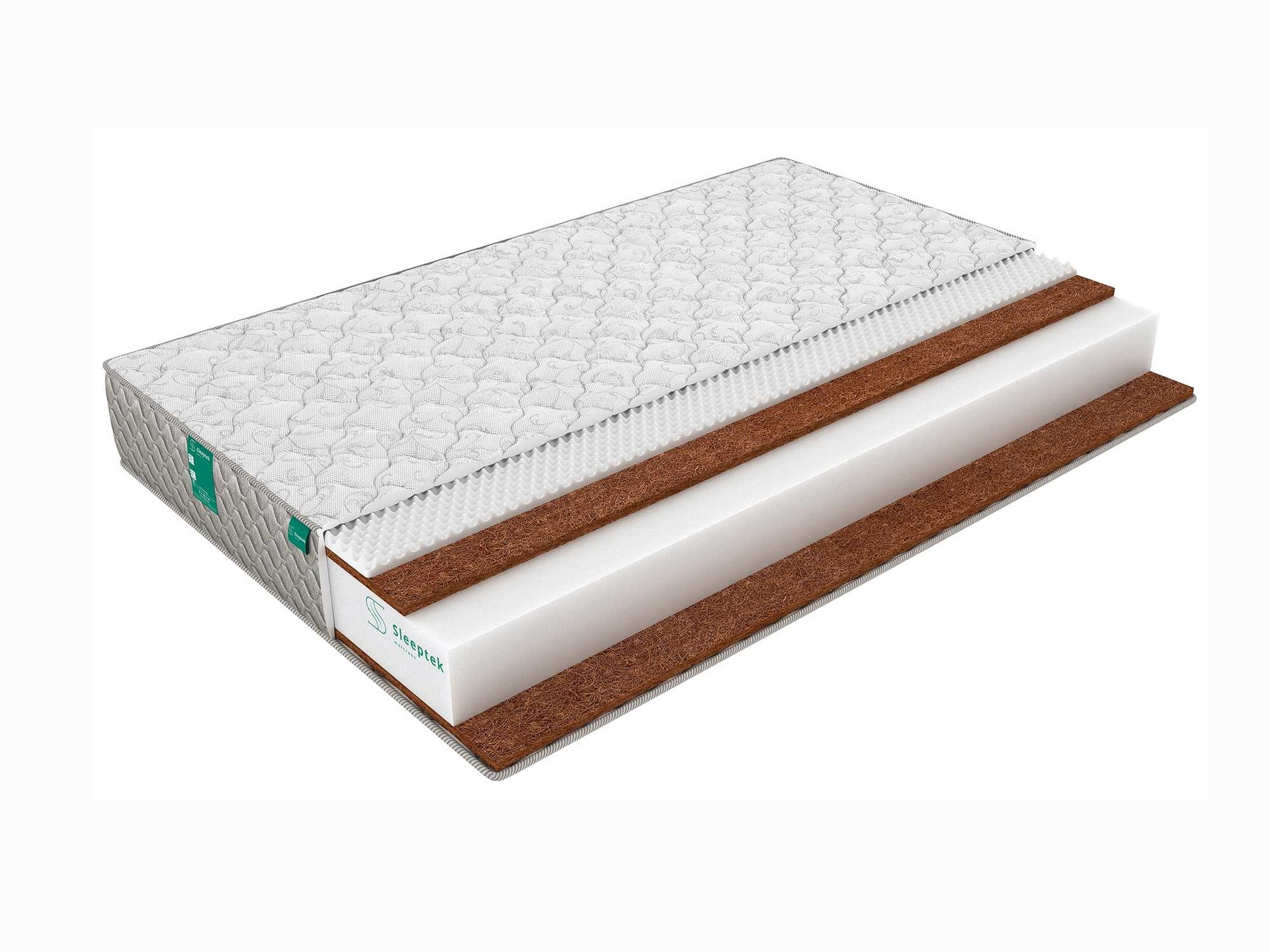 По сторонам от блока пены установлены полотна кокоса. Они забирают на себя функцию правильной ортопедической поддержки. Материал одновременно отличается жёсткостью и гибкостью, поэтому он великолепно адаптируется под S-образный изгиб позвоночника и удерживает его в физиологичном положении.