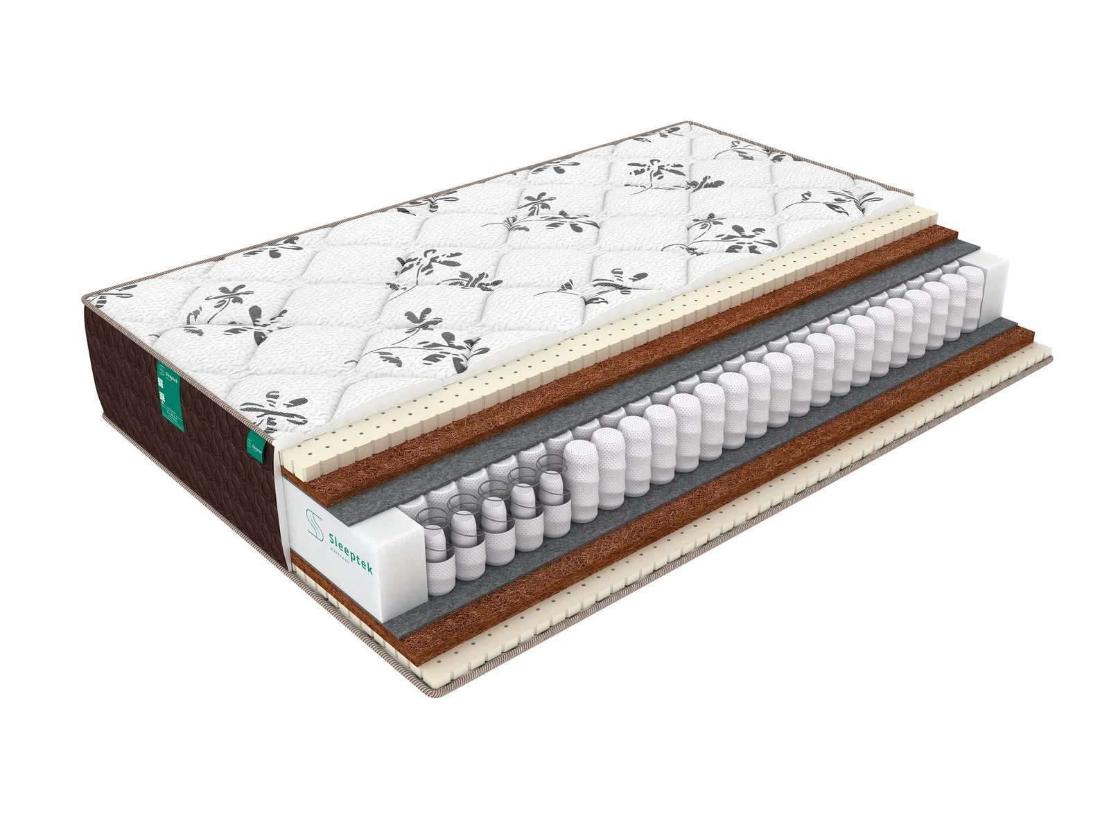 В основе матраса блок независимых пружин Double Spring. Его особенность в том, что внутри крупных пружин находятся более мелкие, что позволяет спальной поверхности точечно реагировать на прилагаемое усилие. Кроме того, двойные пружины значительно продлевают срок службы матраса, поскольку увеличивают выдерживаемые им нагрузки. Блок пружин отделен от наполнителей слоями термовойлока,он защищает наполнители от контакта с пружинами и продлевает срок службы матраса.