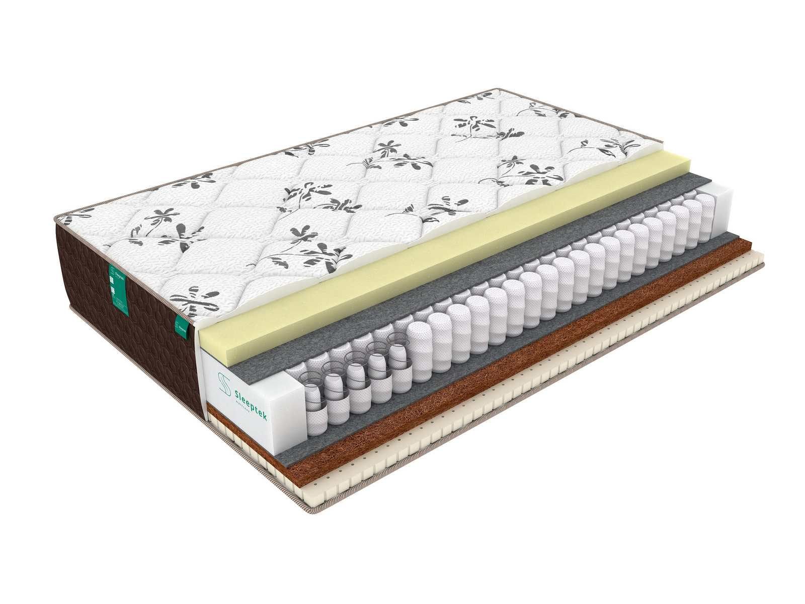 В качестве наполнителя с умеренно мягкой стороны использована комбинация койры кокоса и натурального латекса. Такое сочетание помогает одновременно усилить ортопедические качества блока пружин и придать спальному месту комфорт.