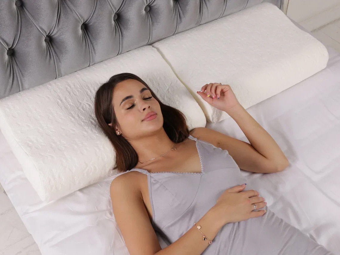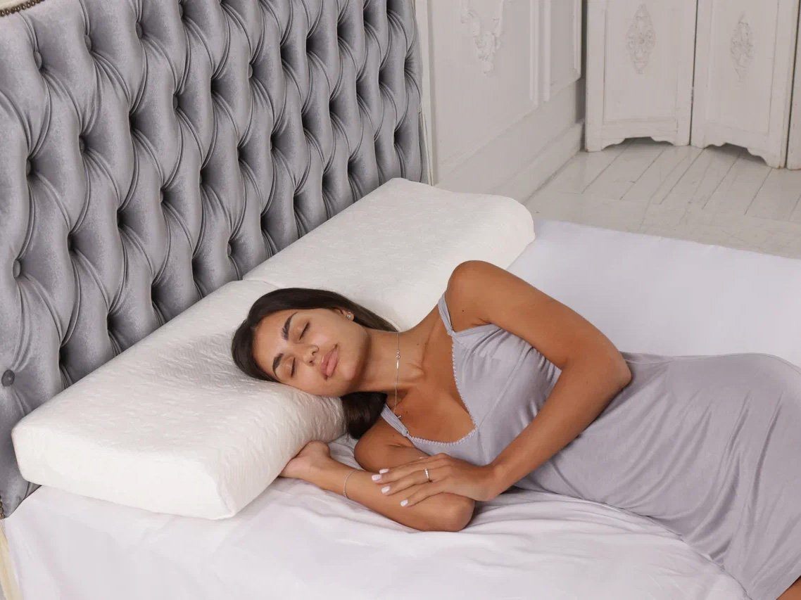 Волнообразная форма подушки считается наиболее оптимальной при головных болях, мигренях, дискомфорте в шее и позвоночнике. Она нивелирует нагрузку на шейно-плечевой отдел, не сдавливает сосуды, а значит способствует хорошей циркуляции крови.