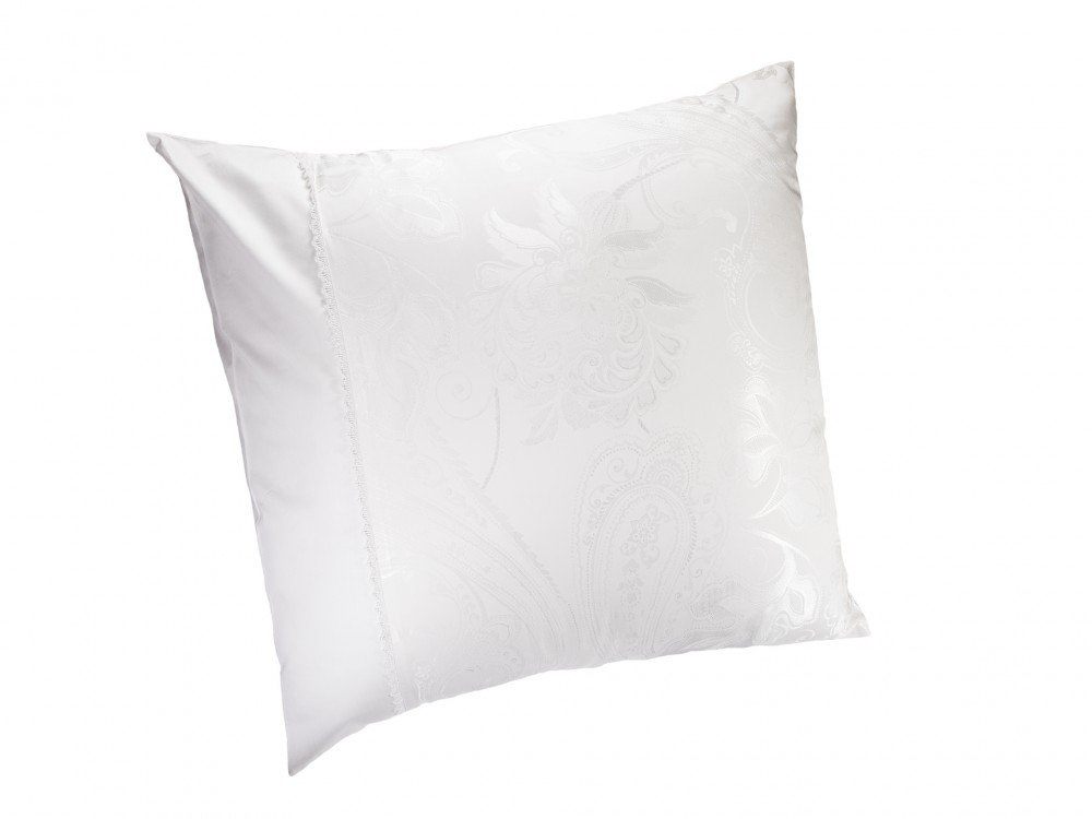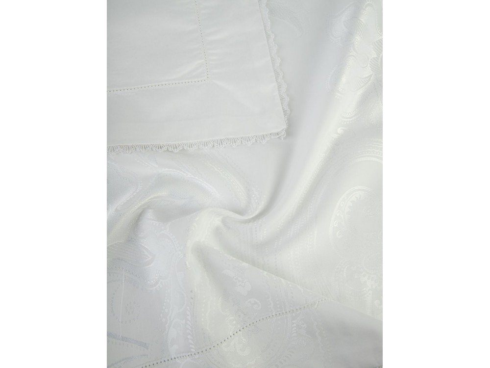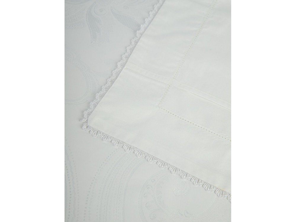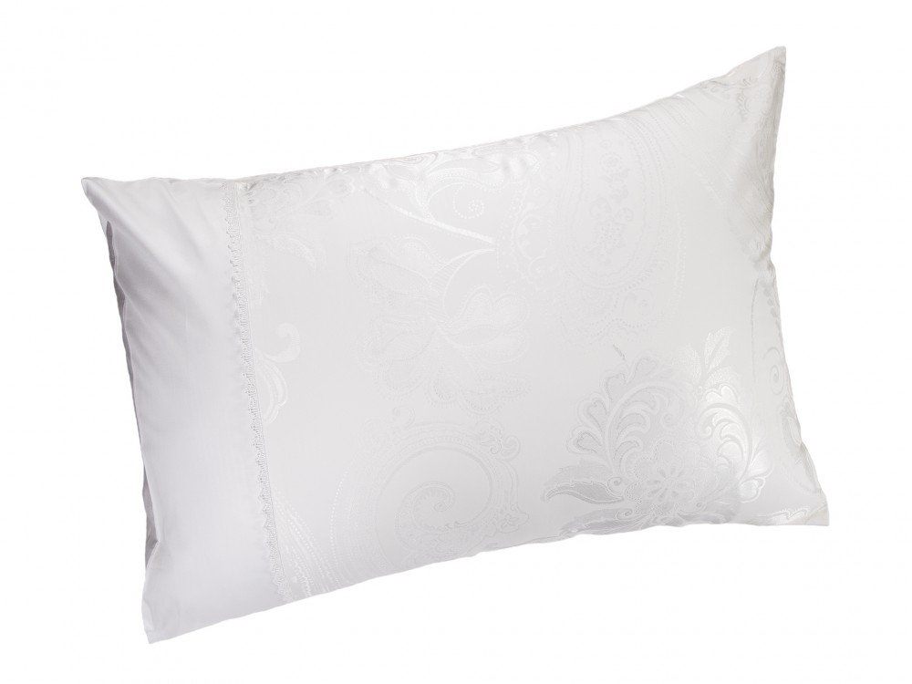 Комплект наволочек 50х70 см 2 шт. или 70х70 см 2 шт. белоснежного цвета. Верх наволочек из жаккардового люкс-сатина (55% вискоза, 45% хлопок), оборотная сторона люкс-сатин (100% хлопок). Отделка - изящное маленькое кружево. Наволочки закрываются на клапан. В комплекте 2 наволочки; упакованы в пакет из пвх с фирменным логотипом.