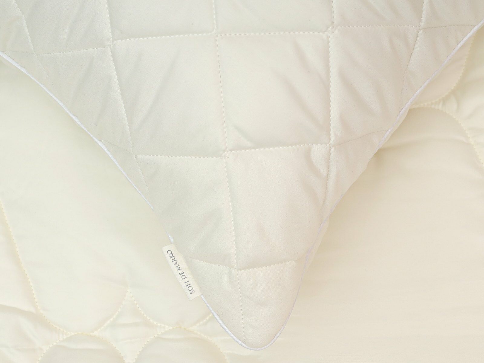 Подушки стеганые с белым атласным кантом по периметру.