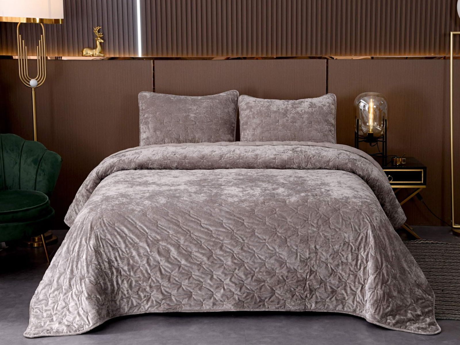 Бархатное покрывало Алира выглядит роскошно и элегантно, оно придаст спальне стильный и изысканный вид. Бархатную ткань начали изготавливать еще в Средние века, её использовали в оформлении дворцов и изготавливали плащи и головные уборы для знати. Теперь и вы можете прикоснуться к этой роскоши! Бархатная текстура приятная на ощупь, а из-за особого плетения ткани, игра света на ней выглядит благородно. Поэтому покрывало Алира создаст необычайно уютную атмосферу в вашей спальне.