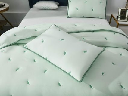 В комплект входят покрывало и одна либо две наволочки (50х70 см) из аналогичного материала, в зависимости от размера.