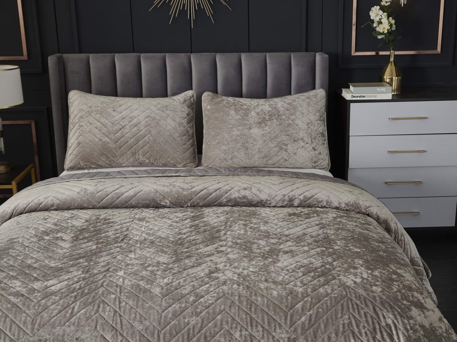 Покрывала Фернанд выглядят как будто сошли с картин, изображающих королевские покои. Бархатную ткань начали изготавливать еще в Средние века, её использовали в оформлении дворцов и изготавливали плащи и головные уборы для знати. Теперь и вы можете прикоснуться к этой роскоши! Бархатная текстура приятная на ощупь, а из-за особого плетения ткани, игра света на ней выглядит благородно. Поэтому покрывало Фернанд создаст необычайно уютную атмосферу в вашей спальне. Цветовая гамма разнообразна и включает восемь благородных оттенков: капучино, бежевый, изумруд, горчичный, терракотовый, пепельная роза, серый, стоун. За покрывалом Фернанд легко ухаживать: стирка при температуре 30 градусов, вручную или в машинке. Важно хорошо просушить изделие! При правильном уходе вещь прослужит долгие годы не потеряв форму и цвет.