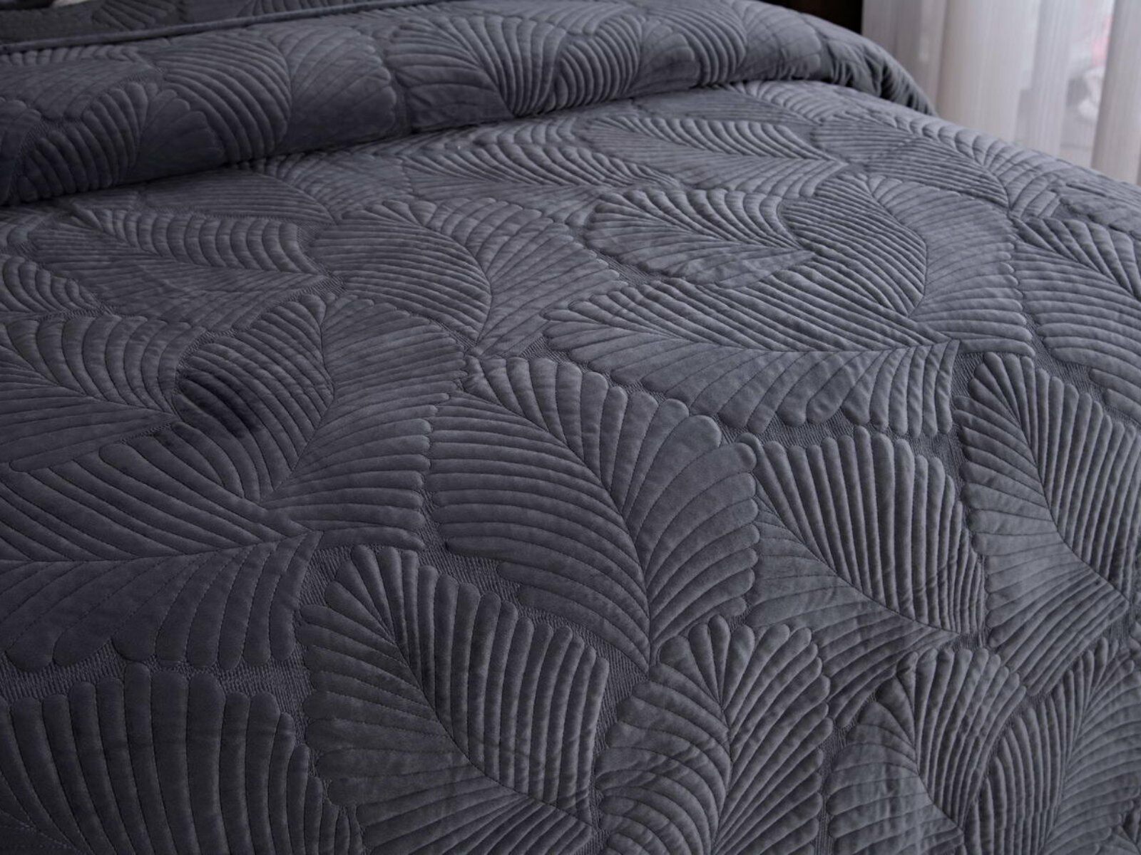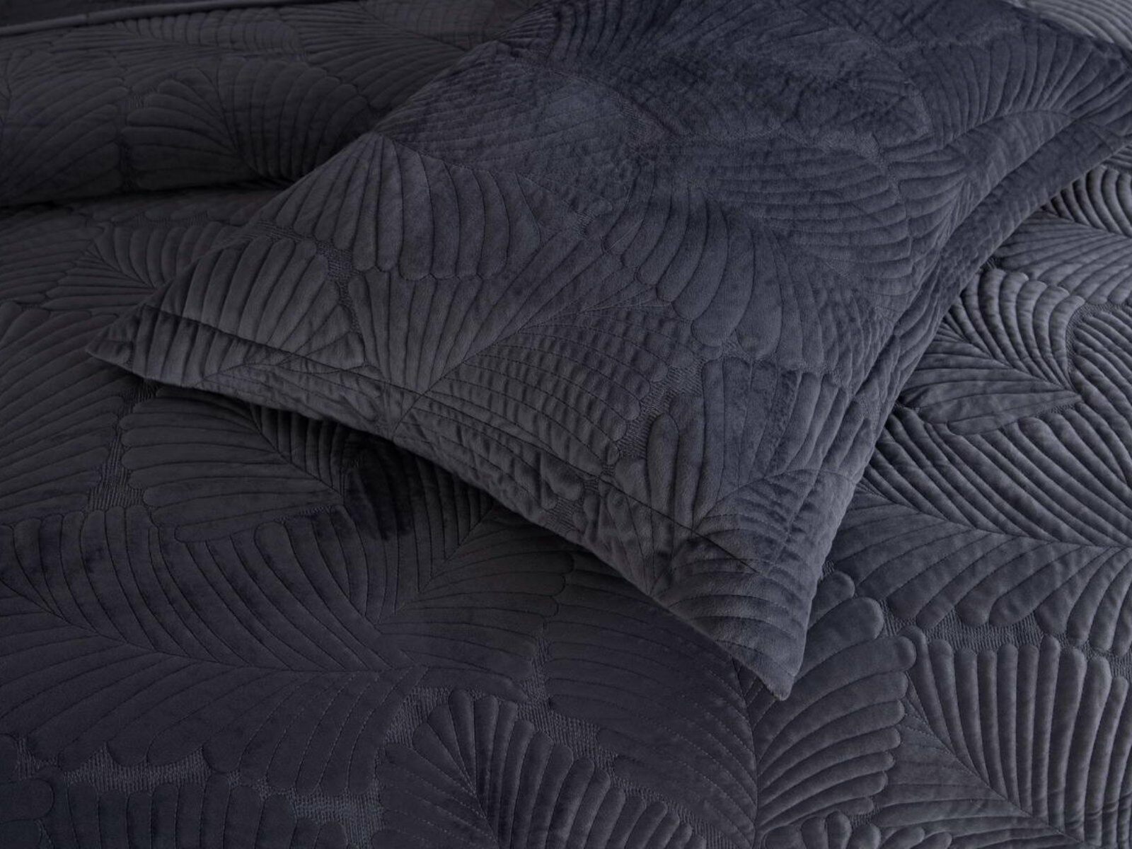На создание велюрового покрывала Ноэль наших дизайнеров вдохновила ночь в середине лета, когда на раскаленную от жары землю спускается долгожданная прохлада. Роскошная вышивка в виде пальмовых листьев будет напоминать о тени, которую отбрасывают деревья.