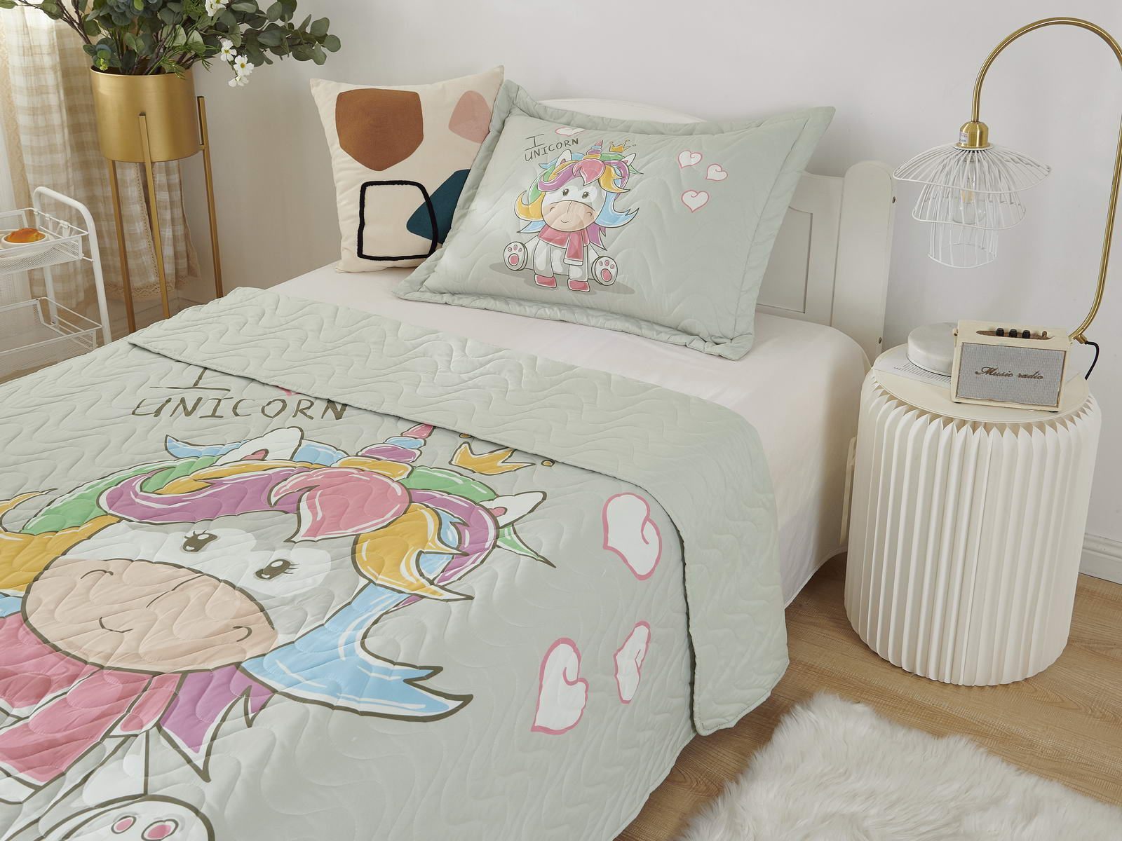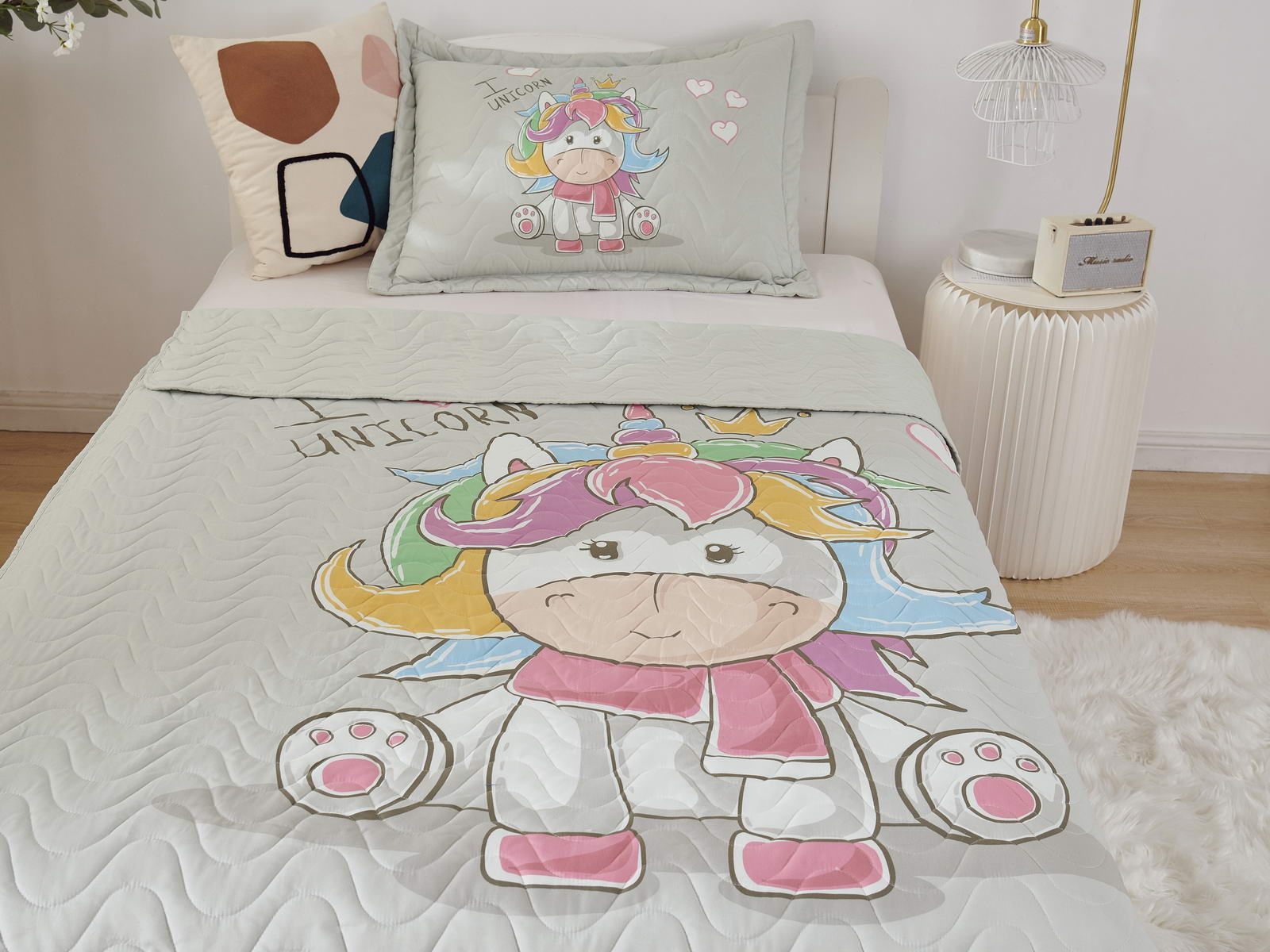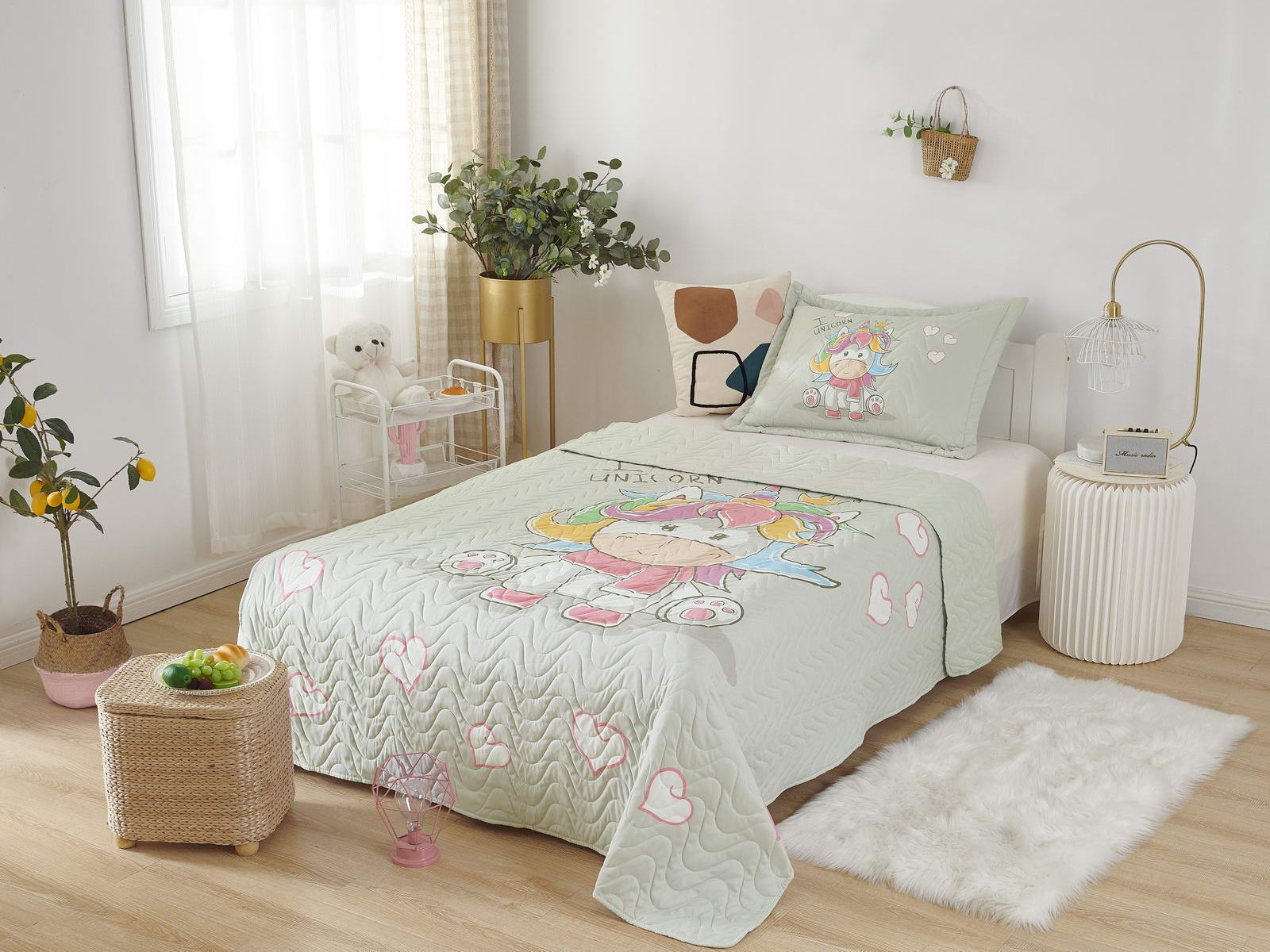 Детские покрывала - это особая забота об уюте и комфорте ребенка. Красивое, стеганое покрывало коллекции «Sunny day» придаст любой детской спальне яркую индивидуальность. Волнистые стежки делают изящные покрывала еще более выразительными и изящными. К ним в комплекте идут наволочки, у них есть интересная особенность, которая непременно понравится ребенку– небольшие ушки.