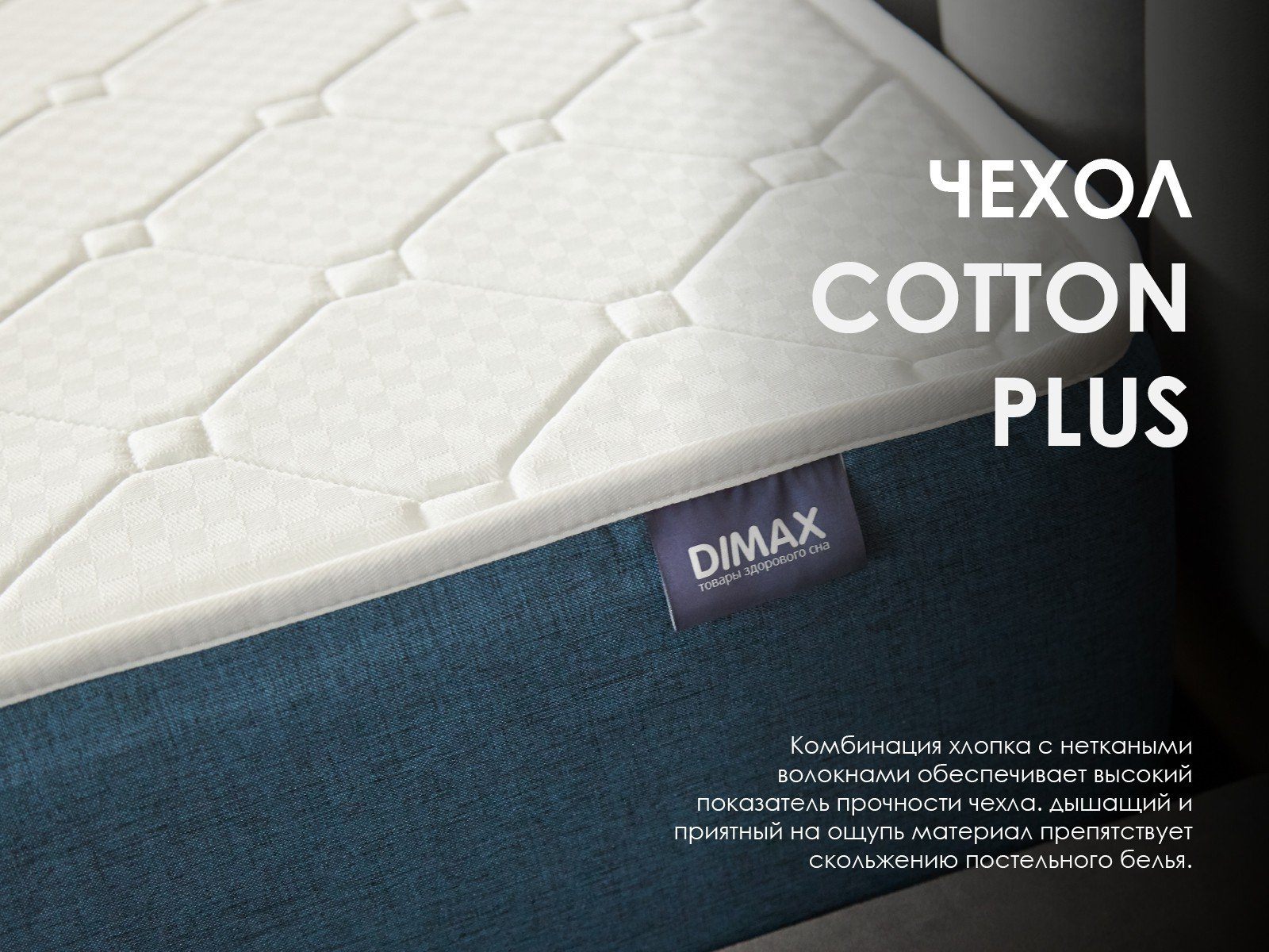 Матрас поставляется в несъёмном хлопковом чехле. Жаккардовое полотно простёгивают на мягком ППУ. В результате у спальных поверхностей получается красивый объём. Боковая часть матраса сшита из рогожки.