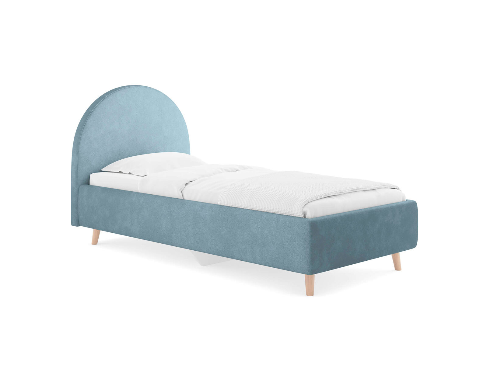Подростковая кровать с закругленным изголовьем — это идеальное решение для создания уютного и стильного пространства в комнате. Элегантные линии изголовья не только придают изделию изысканный вид, но и добавят мягкость в интерьер, создавая уютную обстановку. По умолчанию задняя спинка кровати обивается тканью, что позволит расположить кровать не только к стене. Основание кровати на высоких деревянных ножках. Благодаря увеличенной высоте позволяют осуществлять легкую уборку под кроватью, даже с помощью робота-пылесоса. При необходимости кровать может быть укомплектована трансформируемым основанием Aquarius.