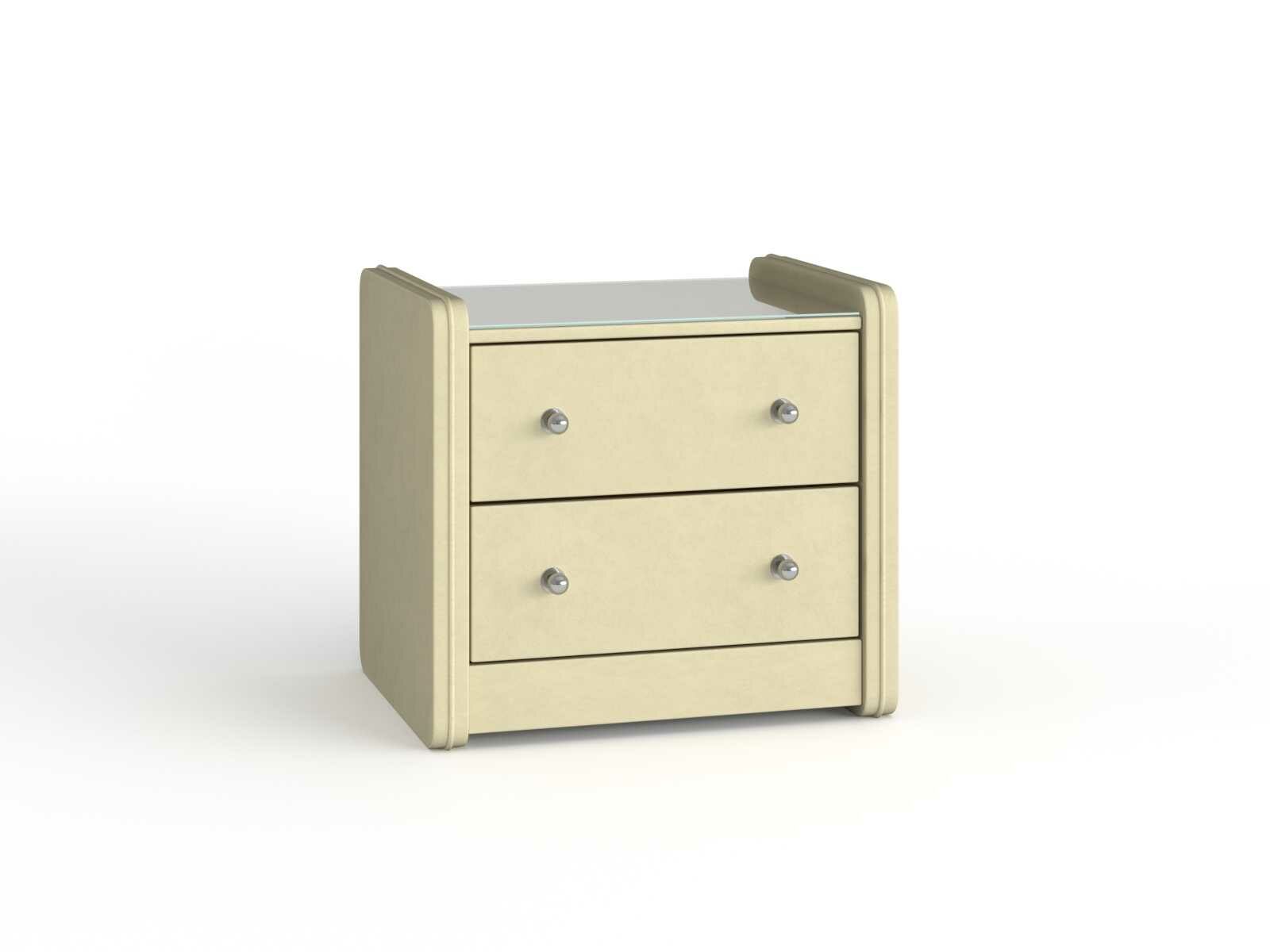 Тумба прикроватная Сандрига выполнена в изысканном классическом стиле. Обивка из высококачественного материала придает мебели особый шарм. Модель легко впишется в современные интерьеры и станет практичным дополнением меблировки спальни. На стеклянной столешнице расположится ночник, книга или чашка чая, а для необходимых под рукой мелочей предусмотрены два выдвижных ящика с ручками.