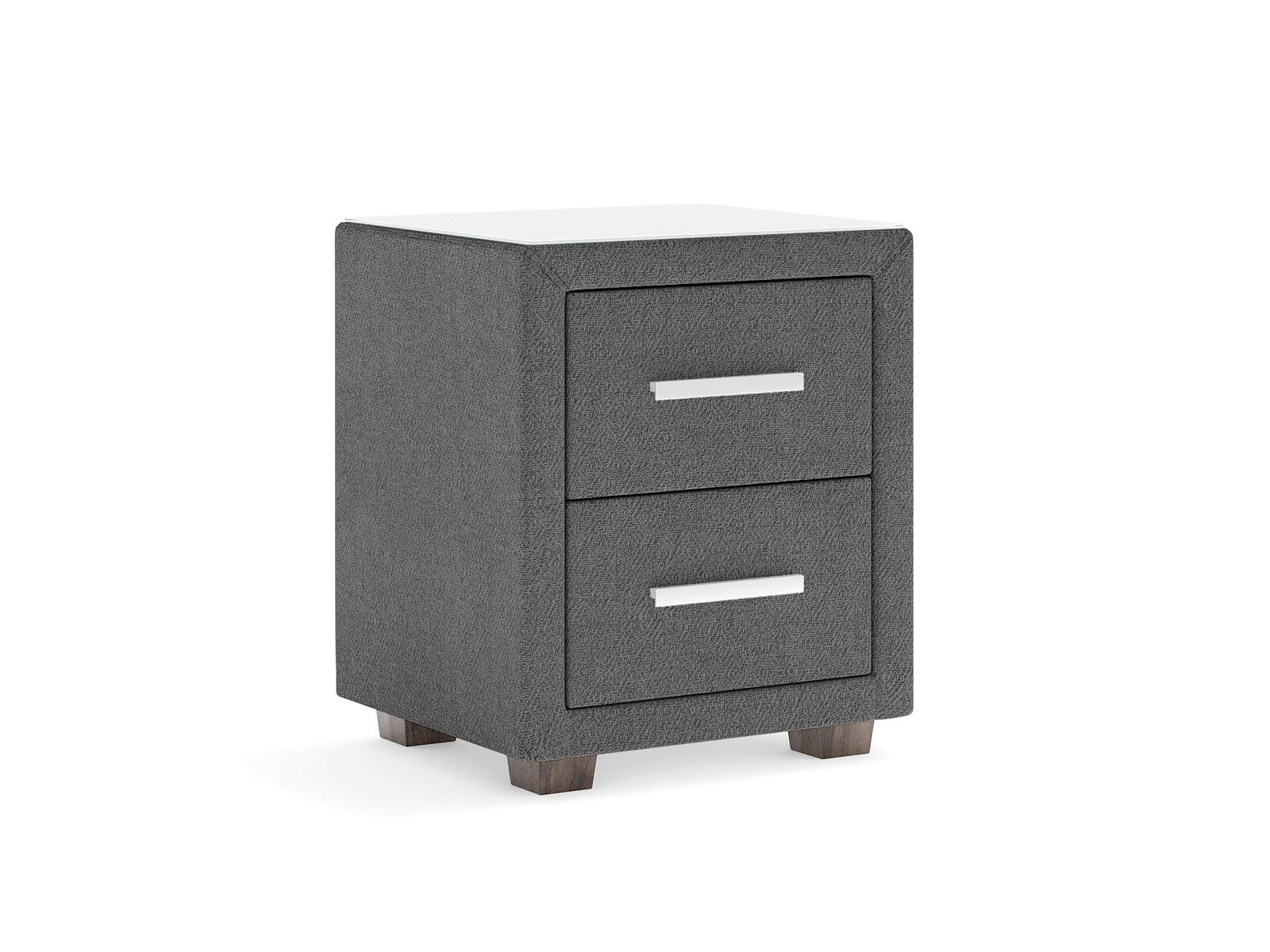 Прикроватная тумба с двумя выдвижными ящиками сочетается с любыми моделями кроватей, органично вписывается в интерьер практически любого стиля. Каркас тумбы выполнен из ДСП. Каркас тумбы и фасад ящиков покрыты обивочным материалом. Для удобства использования и продления срока эксплуатации, рекомендуется использовать стеклянную накладку. Накладка используется в качестве столешницы для тумбы и защищает ее от повреждений и загрязнений. Стеклянная столешница заказывается дополнительно.